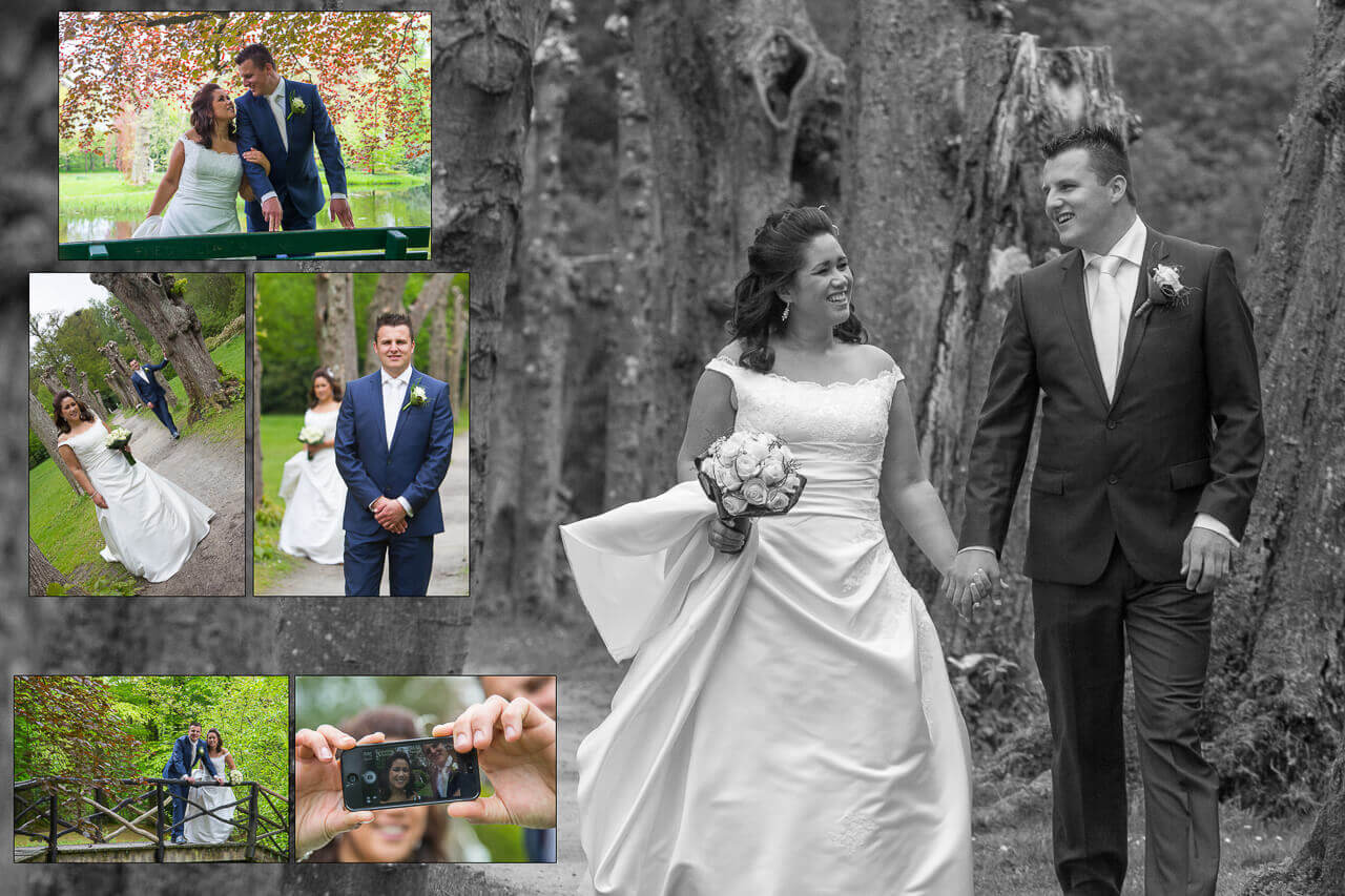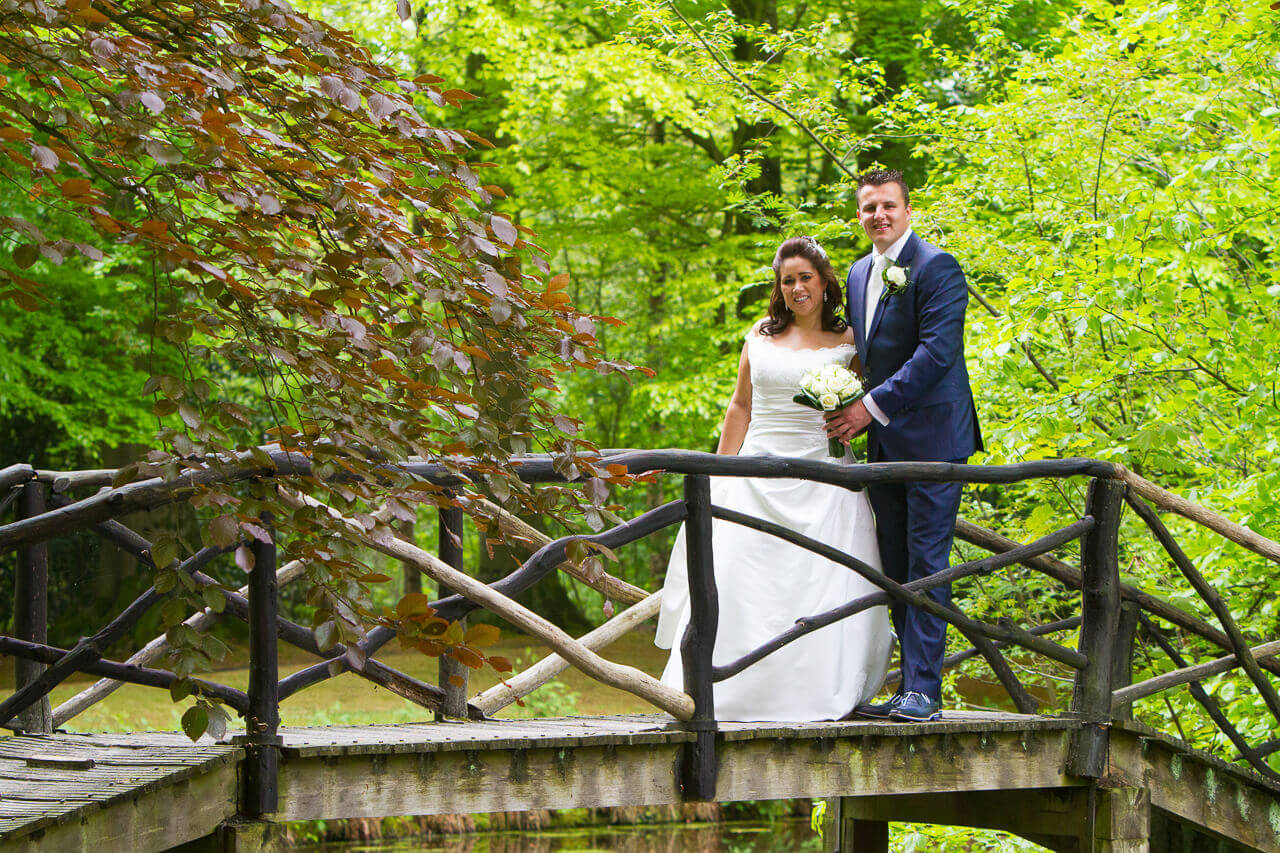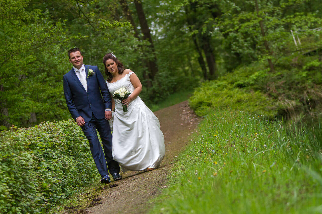 Vrijdag 17 mei zijn Gerard en Daphne getrouwd. Na een zeer prettig kennismakingsgesprek eerder in het jaar, was al snel duidelijk dat ik hun trouwdag mocht ik fotograferen. Een erg leuk stel! De dag begon voor mij in Buitenpost bij het aankleden van de bruiden de bruidsmeisjes. De bruidegom was elders in Buitenpost om later met paarden en een mooie koets zijn toekomstige vrouw op te halen. Het ophalen van de bruid leverde leuke foto’s op, gevolgd door een kleine fotoreportage bij de paarden met koets. Hierna met de open koets richting het gemeentehuis in Buitenpost gereden voor de ceremonie. Na de gebruikelijke bordesfoto vertrok de trouwstoet naar De Plaets in Burgum. Voor de lunch kwamen alle daggasten bijeen voor een aantal groepsfoto’s. Daarna ging het trouwpaar met mij richting het bos van Ypey, waar we de trouwreportage hebben gefotografeerd. Een mooie lokatie met verschillende settings om foto’s te maken. Voor de reportage hadden we ruim een uur gepland. Na het aansnijden van de taart op de Pleats in Burgum en een rust momentje was het tijd voor het avonddiner. Een leuk moment om in alle rust de gasten te fotografen en ook de kinderen terwijl ze aan het spelen zijn. Hierop volgde een rit naar de kerk voor de huwelijksinzegening. Ook zijn er nog twee witte duiven losgelaten uit een prachtig rood hart. Toen het feest begon, zat voor mij de trouwreportage erop. De complete reportage is na enkele weken aangeboden op dvd’s inclusief enkele fotocollages.
