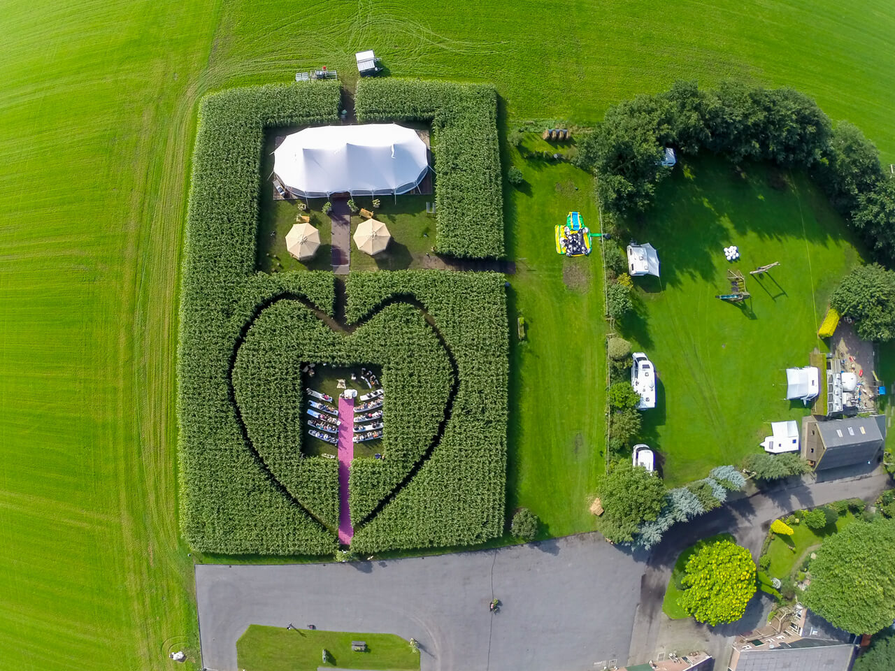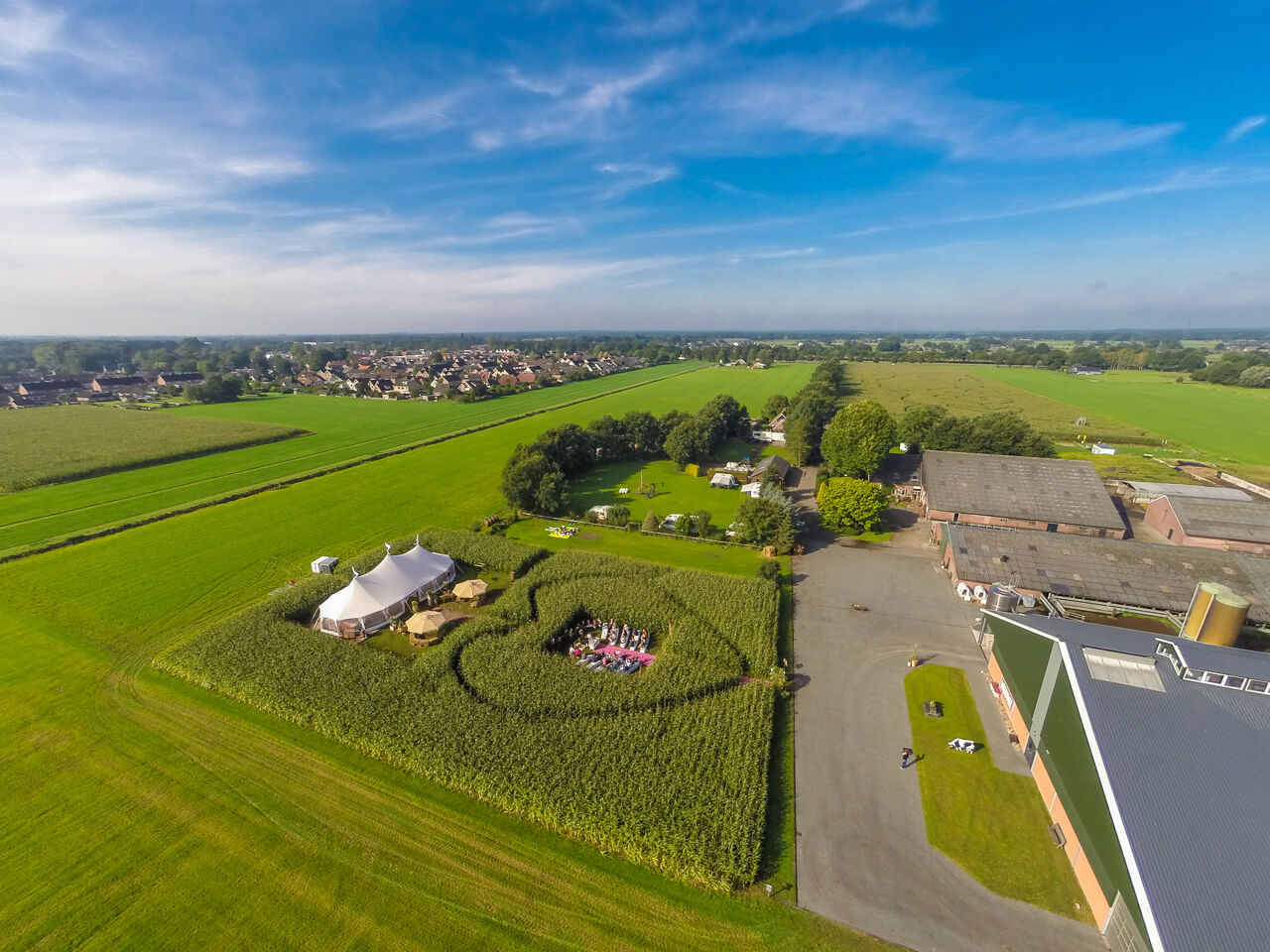 Op 18 september in Lemelerveld met de drone deze unieke trouwlokatie mogen vastleggen. Een hart gemaakt in het mais met hierin de ceremonie en het feest. Van boven was het een prachtig gezicht en Marcel en Joan waren ook erg blij met de unieke drone beelden.
